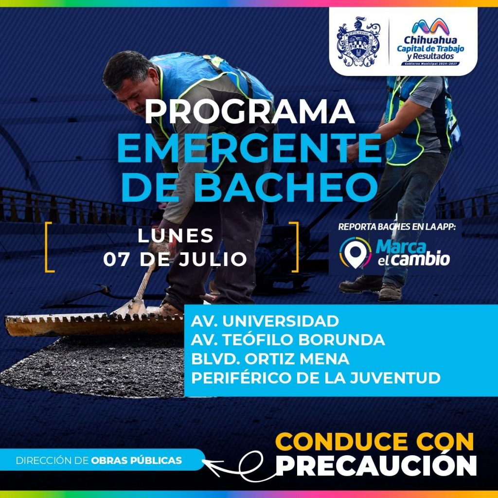 El Gobierno Municipal, a través de la Dirección de Obras Públicas, continuará este lunes con el programa permanente de bacheo y será reforzado con el programa emergente, mediante el cual, cuadrillas adicionales estarán recorriendo las principales avenidas y calles secundarias de la ciudad, tras las afectaciones ocasionadas por las lluvias.