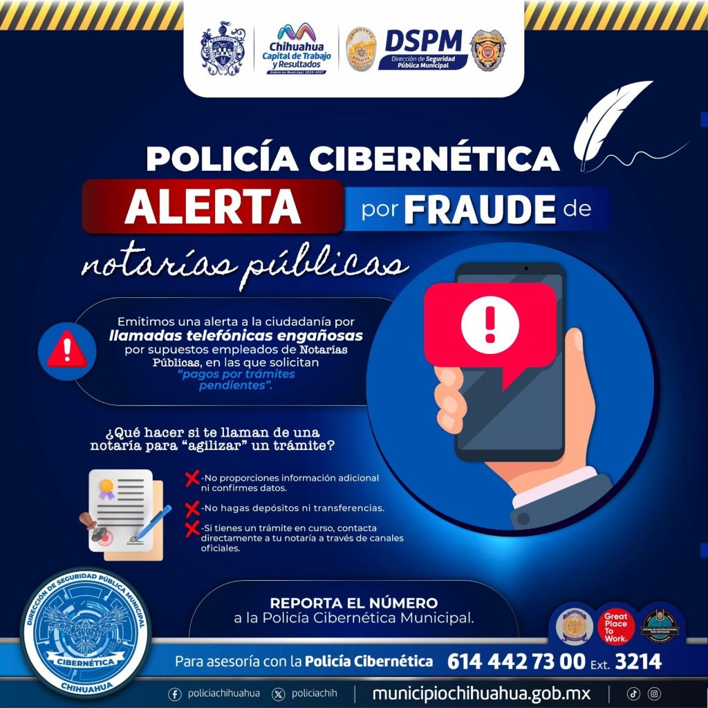 Para cualquier duda o aclaración respecto a éste u otros delitos similares, puedes comunicarte al teléfono de la Policía Cibernética del Municipio 614-4-42-73-00, en la extensión 3214.