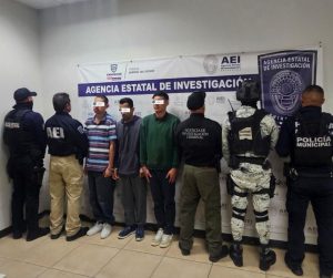 En el centro CRECAVI A. C., en las calles Miguel Auza y Esteban Pérez, fueron detenidos tres hombres: Gerardo “N”, de 28 años, con orden de aprehensión por violencia familiar contra la intimidad sexual y lesiones; Salud Gabriel “N”, de 45 años, por delitos contra la salud; y Leonardo “N”, de 32 años, también por delitos contra la salud.