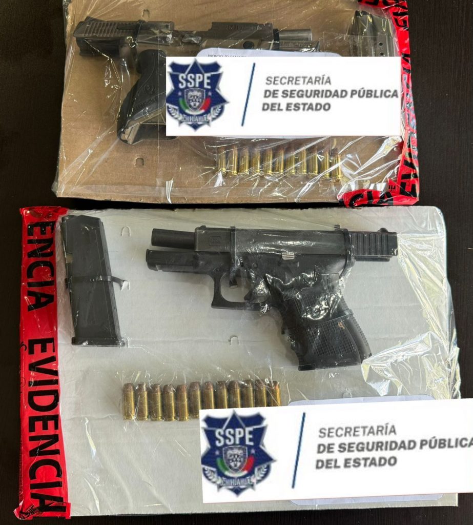 Al acercarse los agentes, las 6 personas se identificaron como José Hasem L. C., Manuel Ramón T. G., Christian Jesús A. R., Jaime C. J., Sergio Geovanni B. C. y Elsie Yadira P. H., quienes portaban 2 armas de fuego, una pistola Glock .40 mm, así como una pistola Ruger 9mm, ambas con sus respectivos cargadores abastecidos con un total de 23 cartuchos útiles, razón por la que fueron detenidos.