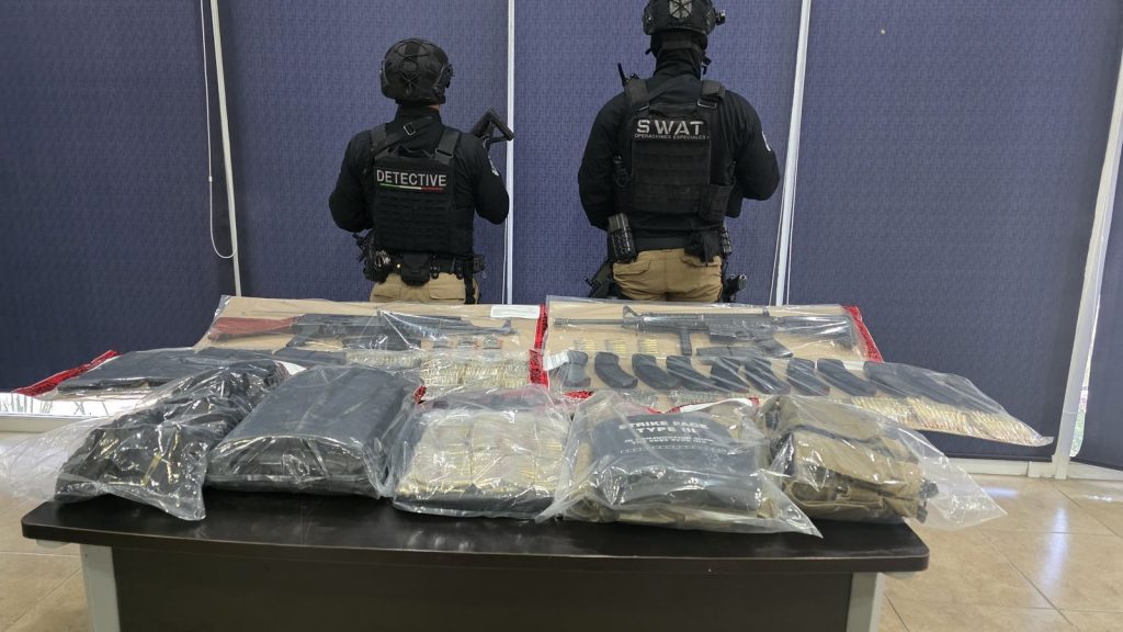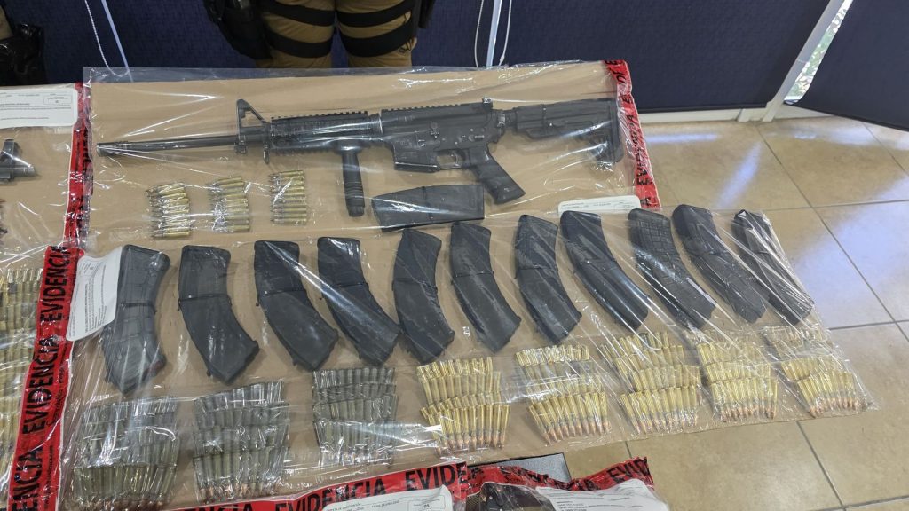 Además, se logró el aseguramiento cerca de dos mil cartuchos útiles así como 2 fusiles, uno de la marca DPMS Panther Arms, calibre 5.56×45 con un cargador y 30 cartuchos así como de un Riley Defense Inc, calibre 7.62×39 con cargador metálico y 30 cartuchos.