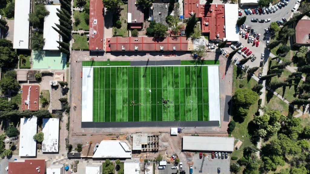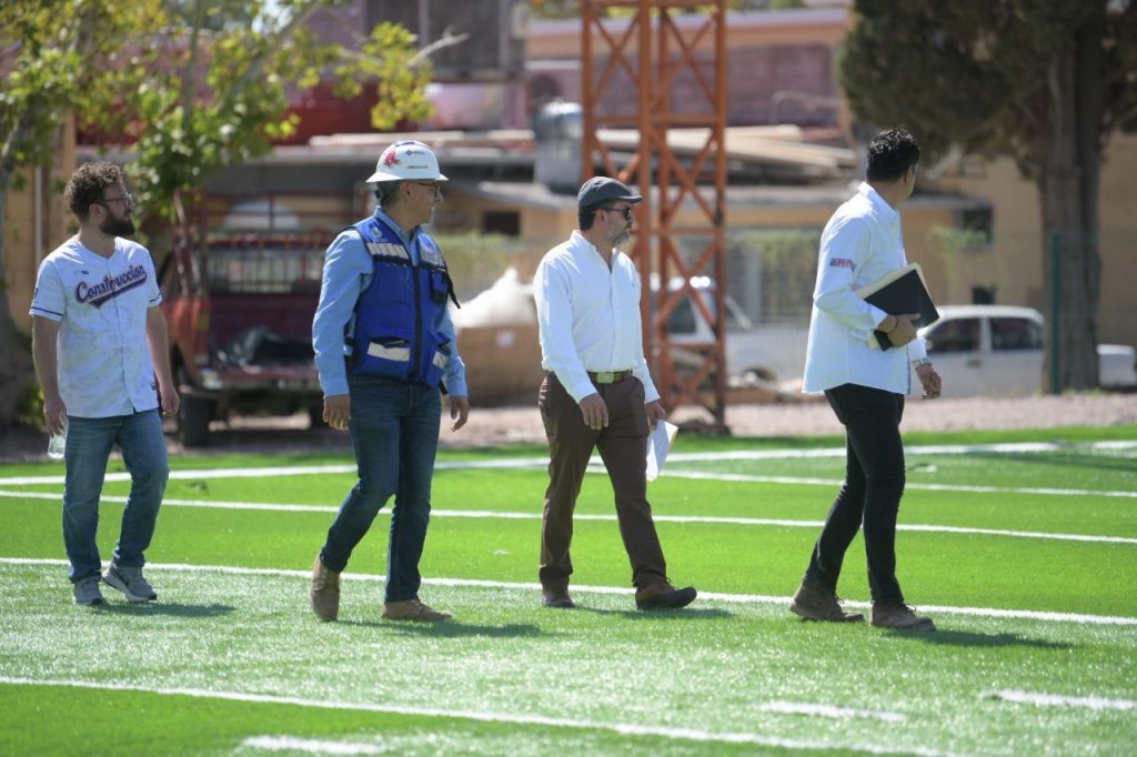 El Rector Rivera Campos destacó los avances técnicos de la remodelación, que incluyen la instalación de pasto sintético, la construcción de graderías con capacidad para 400 personas, y el desarrollo de vestidores, sanitarios y áreas comunes.
