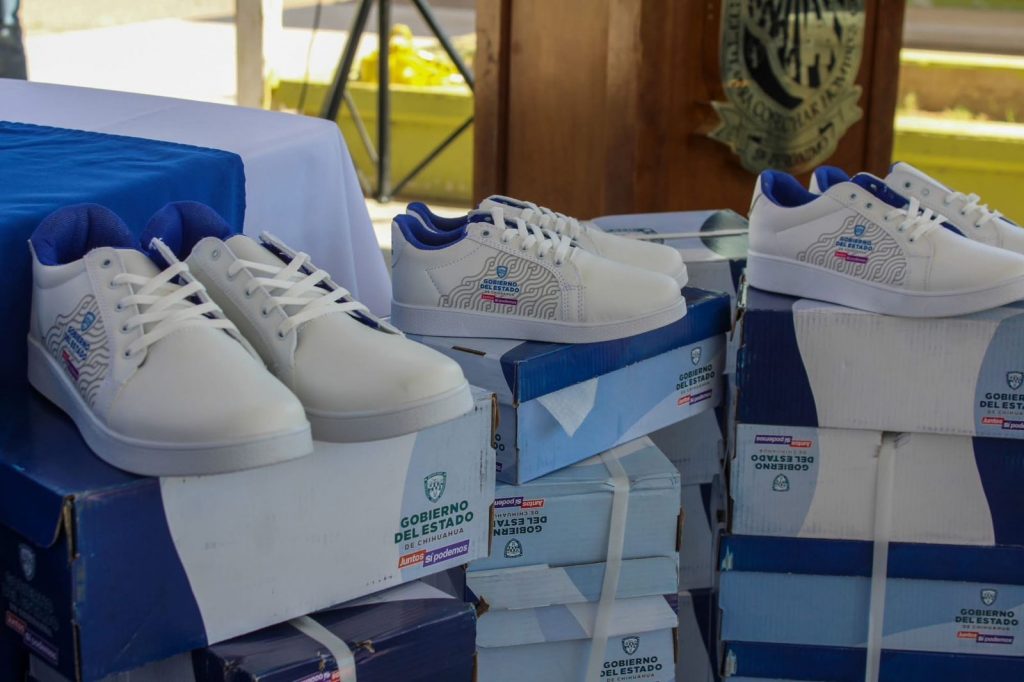 Con el fin de apoyar la economía de las familias chihuahuenses, la Secretaría de Educación y Deporte (SEyD) realizó la entrega de tenis y paquetes de útiles escolares para más de 2 mil 200 estudiantes de Educación Básica de los municipios de Santa Isabel y Riva Palacio.