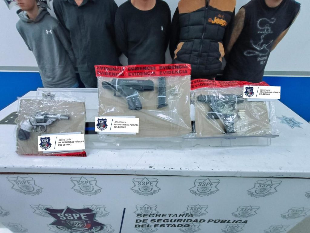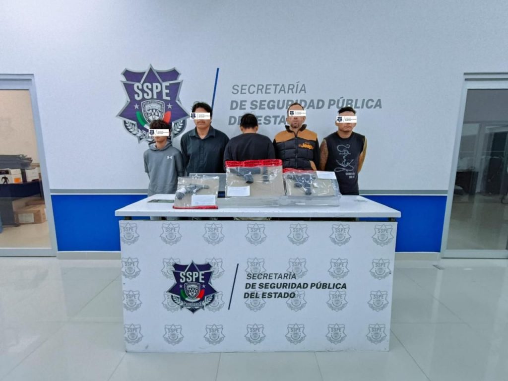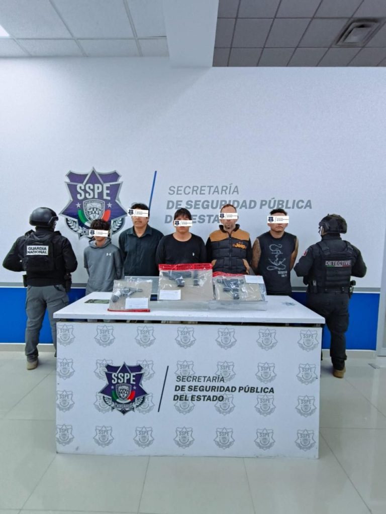 Elementos de la Secretaría de Seguridad Pública del Estado (SSPE), en coordinación con el ejército, la Guardia Nacional y la Agencia Estatal de Investigación (AEI), detuvieron a cinco hombres y aseguraron tres armas de fuego, así como un vehículo, presuntamente los ahora detenidos están vinculados a un caso de lesiones por proyecto de arma de fuego.