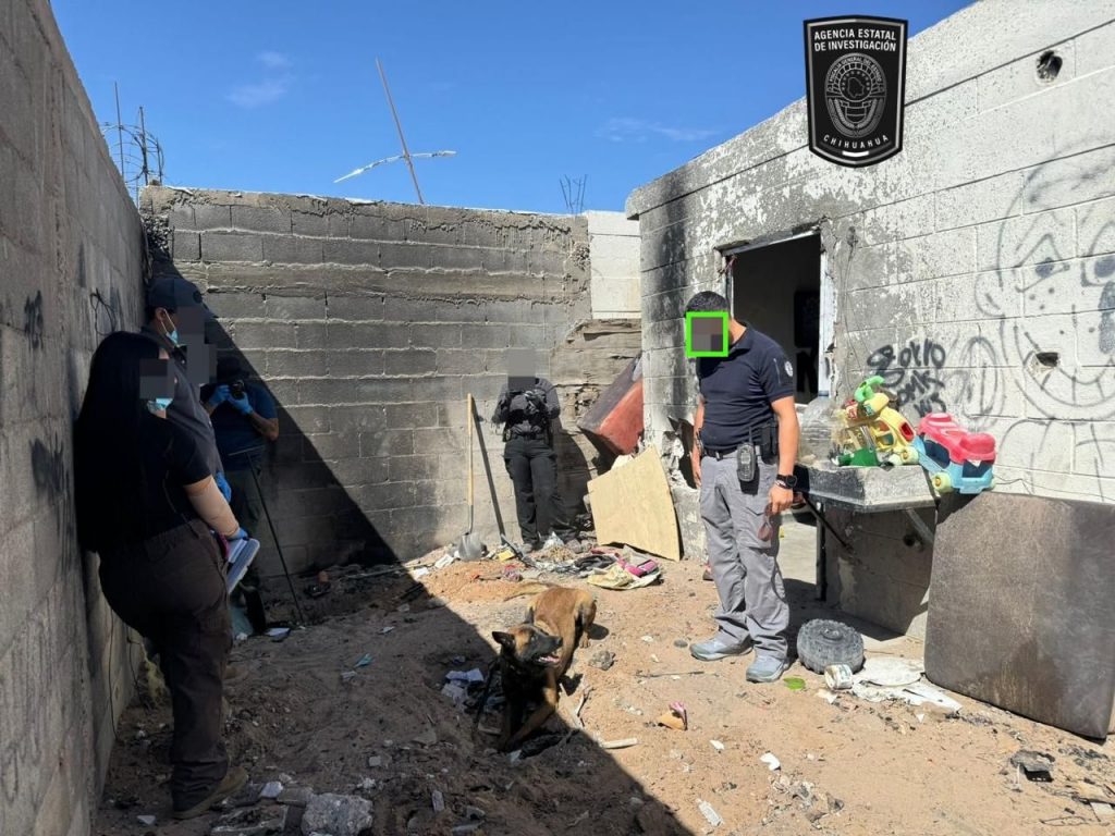 En el cateo participaron agentes del Ministerio Público, de la Agencia Estatal de Investigación, de la Dirección de Servicios Periciales y Ciencias Forenses, a través de las áreas de Peritos y Antropología, así como el binomio K-9.