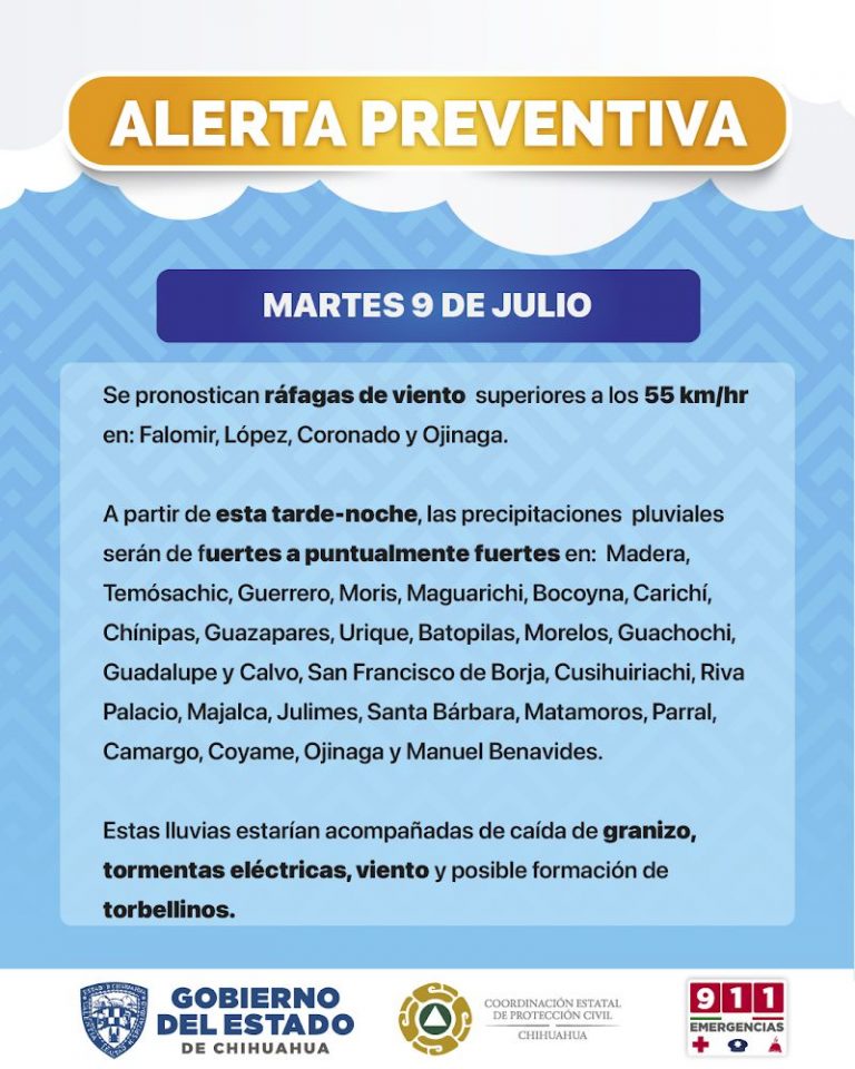 Emite Parral recomendaciones ante el pronóstico de lluvias