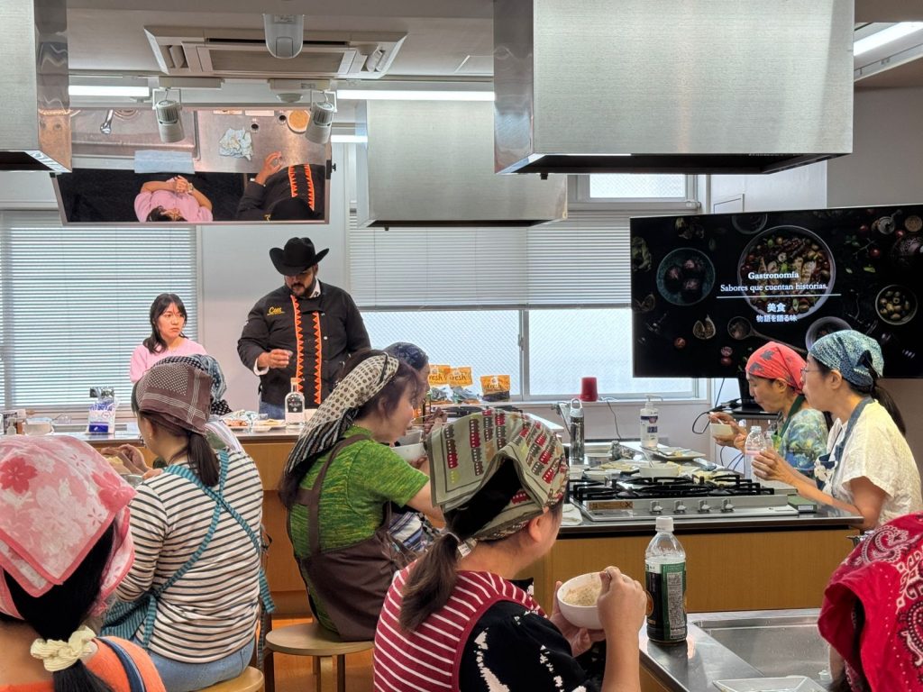 En aulas y taquerías japonesas comparte productos que llevó de municipios de Chihuahua como Aldama, Madera, Chihuahua, Camargo, entre otros.