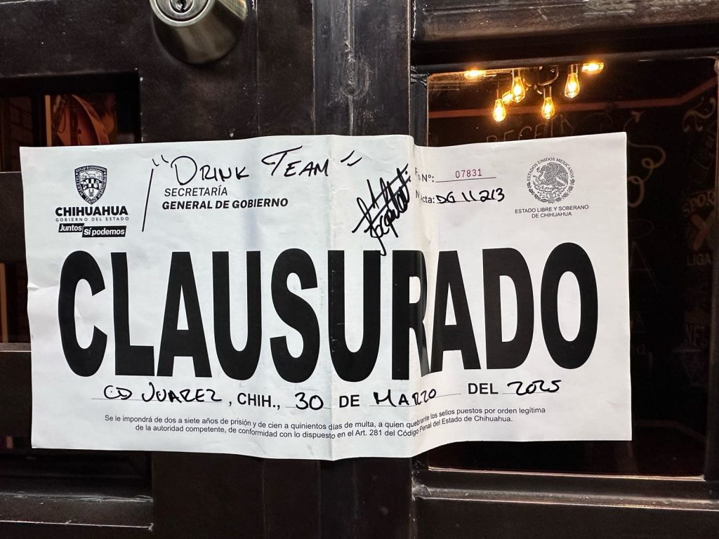 • Centro nocturno “Bar República de Ciudad Juárez” por operar fuera de horario y extracción de bebidas