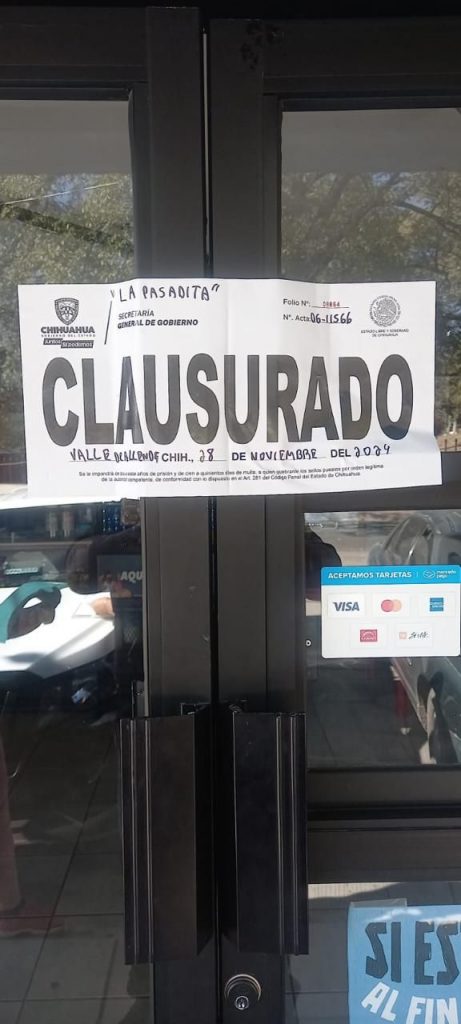 - Licorería en tienda de autoservicio “Oxxo Riveras del Valle”, por falta de revalidación 2024 (Chihuahua)