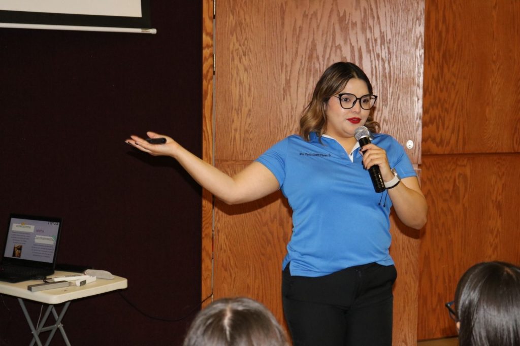 La plática fue impartida por la docente e investigadora universitaria, Dra. Paola Lizeth Flores Garza, especialista en salud mental, prevención de adicciones y violencia, autora y coautora de artículos científicos publicados en revistas indexadas nacionales e internacionales.