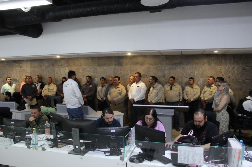 Con la finalidad de conocer el funcionamiento de la Plataforma Escudo Chihuahua Capital (PECUU), personal de seguridad de la Universidad Autónoma de Chihuahua (UACH), visitó la Comandancia Norte, donde pudieron constatar la efectividad de esta vanguardista plataforma tecnológica y recibir una explicación sobre los beneficios que ha aportado a la vigilancia de la ciudad.