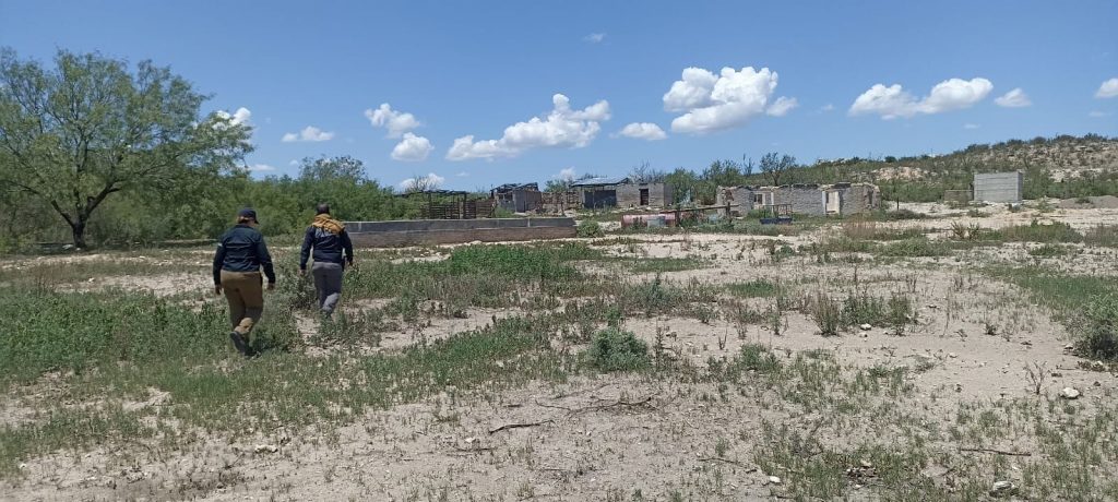 Como parte de los trabajos realizados por el equipo multidisciplinario, se realizaron recorridos pedestres de búsqueda y prospección, en una superficie de cinco mil metros cuadrados, en las inmediaciones de la localidad de El Velduque.