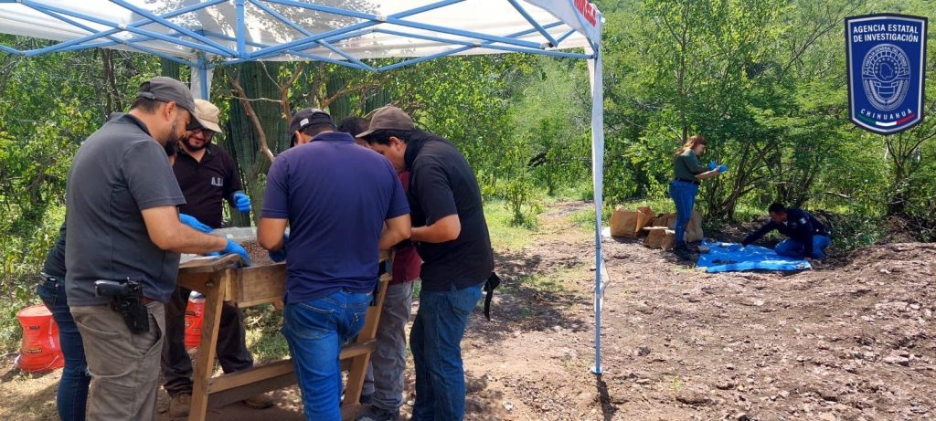 En el seguimiento al rastreo iniciado en la localidad de Tubares, municipio de Urique, personal de Investigación de la Fiscalía de Distrito Zona Occidente localizó un cráneo y gran cantidad de pequeños fragmentos óseos que podrían ser humanos, con alteración térmica.