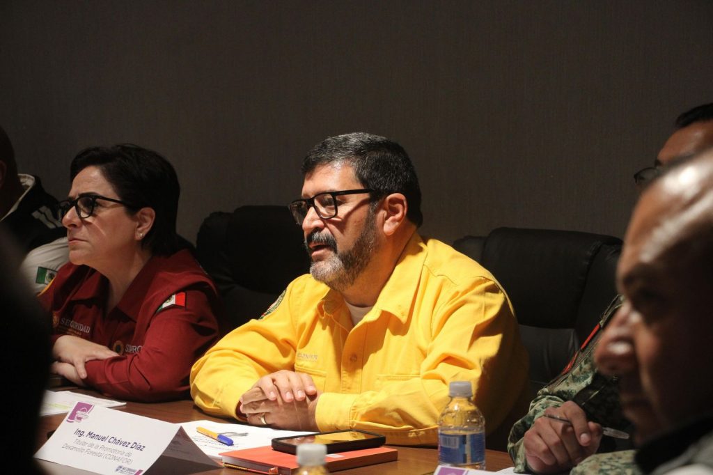 La mesa de trabajo fue integrada por el director de Desarrollo Forestal y Recursos Naturales, Humberto Molinar Hernández; Manuel Chávez de Conafor; el coordinador Estatal de Protección Civil, Luis Ramón Corral Torresdey; y la coordinadora Nacional de Protección Civil, Laura Velázquez Alzúa, quien reiteró el compromiso del Gobierno Federal con la prevención y respuesta ante emergencias.