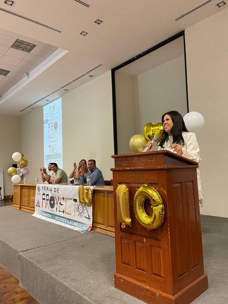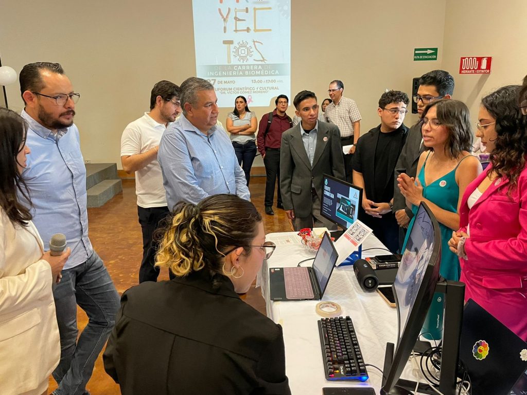 La Ing. Mariel Guzmán, coordinadora de la carrera de Ingeniería Biomédica, destacó que la feria se lleva a cabo desde hace diez años, con el objetivo de que los alumnos de tercer semestre en delante de Ingeniería Biomédica pongan en práctica los conocimientos adquiridos en el aula.