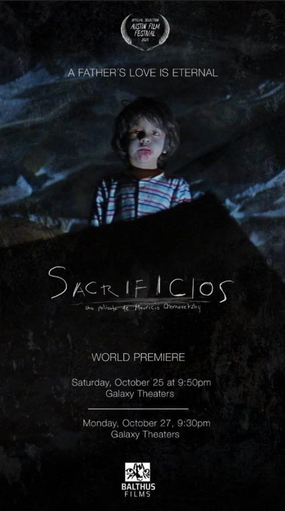 «Sacrificios, como sugiere el título, es una película que me exigió más que cualquier otro proyecto – emocional, físicamente, creativamente. Y después de años en incubación, estoy agradecido de que finalmente esté emergiendo en el mundo. ¡Únete a nosotros en el Austin Film Festival para su estreno mundial! Estaremos proyectando en Galaxy Cinemas el sábado, 25 de octubre a las 9:50 PM y nuevamente el lunes a las 9:30 PM» destaca su director Mauricio Chernovetzky.