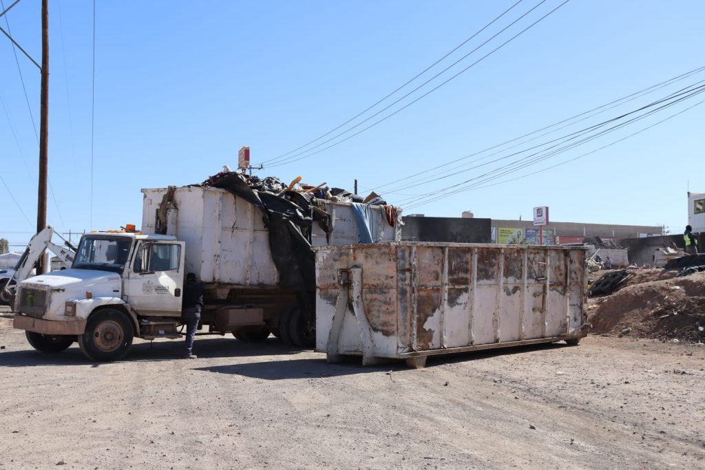 El Gobierno Municipal, a través de las direcciones de Servicios Públicos Municipales y Mantenimiento Urbano, llevo a cabo un operativo en conjunto de limpieza en un terreno donde se alojaban migrantes, ubicado al sur de la ciudad.