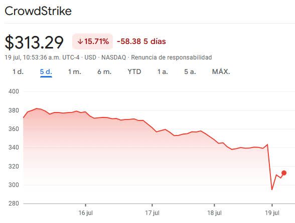Días después de la estrepitosa interrupción global por una actualización defectuosa de la empresa de ciberseguridad CrowdStrike, hoy ya podemos vislumbrar los impactos económicos que esto ocasionó. De entrada, las acciones de la propia empresa cayeron 13.54% en la Bolsa tecnológica del Nasdaq y esta semana perdieron otro 11.10%, sumando un total de 19,260 millones de dólares en valor de mercado. En tanto, Air France/KLM ha perdido 3.35% de su valor en Bolsa, Delta Airlines 2.42% y Volaris cayó 0.96 por ciento.
