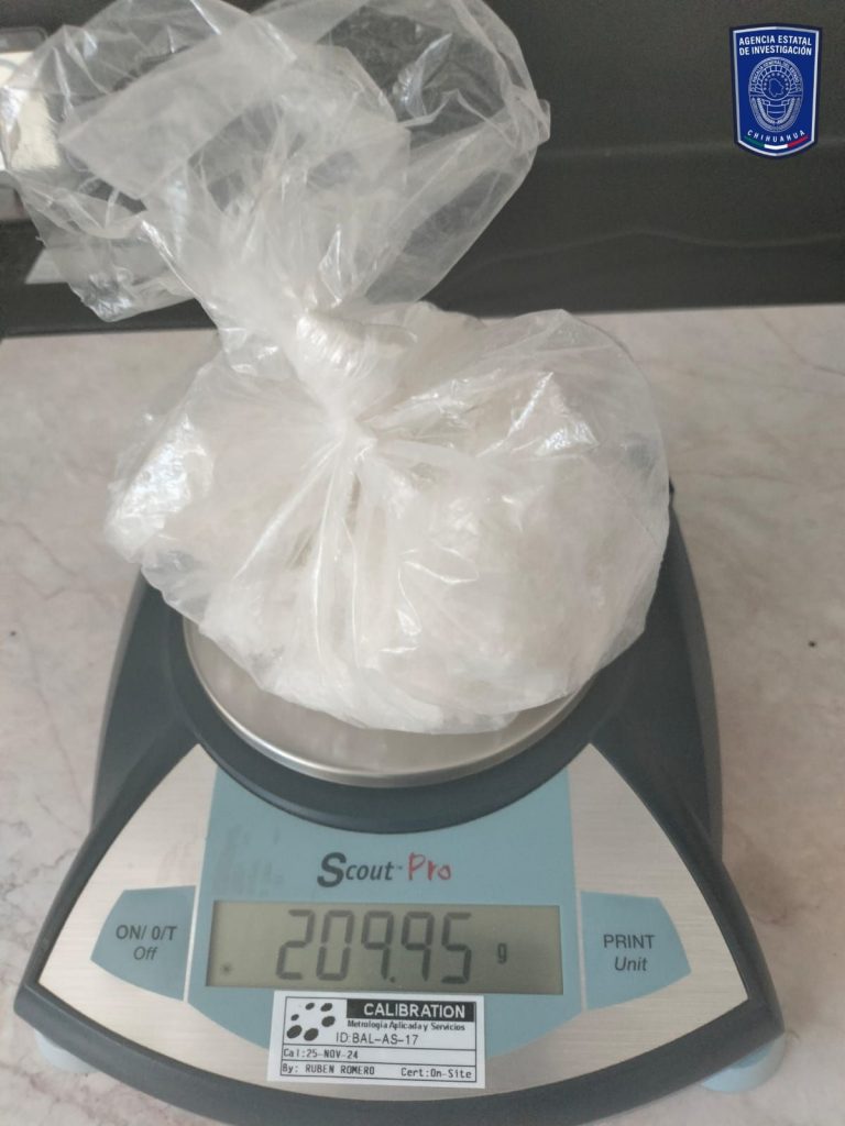 -209.95 gramos de una sustancia cristalina y granulosa con las características del cristal.