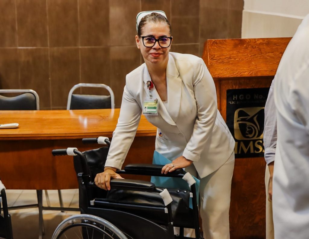 Con el objetivo de unificar esfuerzos a favor de las familias chihuahuenses, la presidenta del DIF Municipal, Karina Olivas, realizó la entrega de cinco sillas de ruedas al Hospital de Gineco-obstetricia y otras cinco más al Hospital Regional No.1 Unidad Morelos del IMSS.