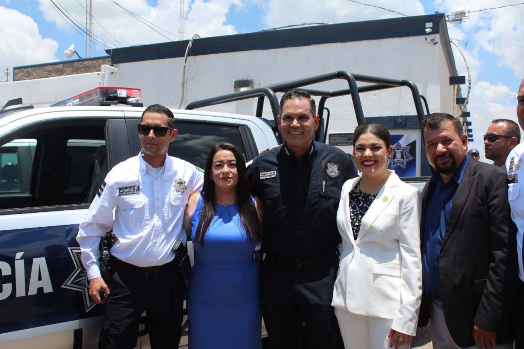 El acto estuvo encabezado por el Secretario de Seguridad Pública, Gilberto Loya Chávez, acompañado por la alcaldesa Miriam Soto Ornelas, el diputado Ismael Pérez Pavía, el titular del Secretariado Ejecutivo del Sistema Estatal de Seguridad Pública, Martín Blanco López, y el director de la Policía Municipal, Víctor Manuel Orona Holguín.