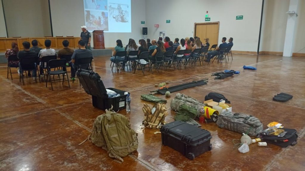 Este evento se llevó a cabo en las instalaciones del Poliforum de la Facultad de Medicina, de la UACH, donde al menos 30 personas, entre maestros, administrativos y jefes de grupo, recibieron los valiosos aprendizajes de identificación de situaciones, evaluación de riesgo y sobrevivencia.