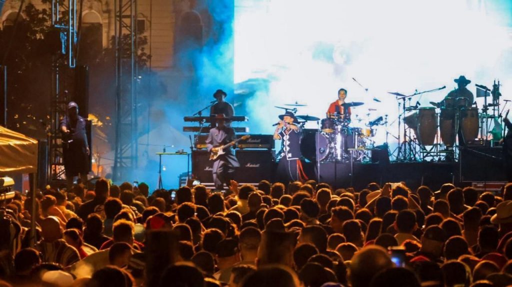 Al concluir la inauguración, la banda La Maldita Vecindad realizó una presentación estelar que hizo vibrar a miles que se dieron cita en la Plaza de La Identidad para disfrutar al ritmo de las canciones más famosas de la banda.