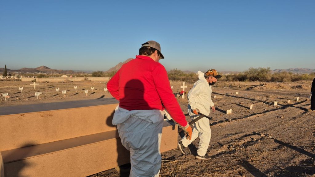 ‘Tenemos pendiente otra más y ya nada más estamos esperando a que el ayuntamiento de Juárez nos apoye con la apertura de las fosas en el panteón de allá para concluir con aproximadamente 600 cuerpos entre la zona sur, occidente, norte y centro».