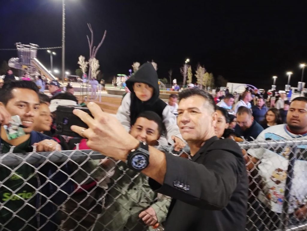 El Santo Inmortal que portó el # 58 en la camiseta albiverde fue objeto de cientos de chihuahuenses que asistieron al evento bajo una noche fresca en el norte de la ciudad. Varios hinchas de Guerreros Chihuahua lo arroparon al tiempo que les complacía con una foto, un autógrafo o una selfie.