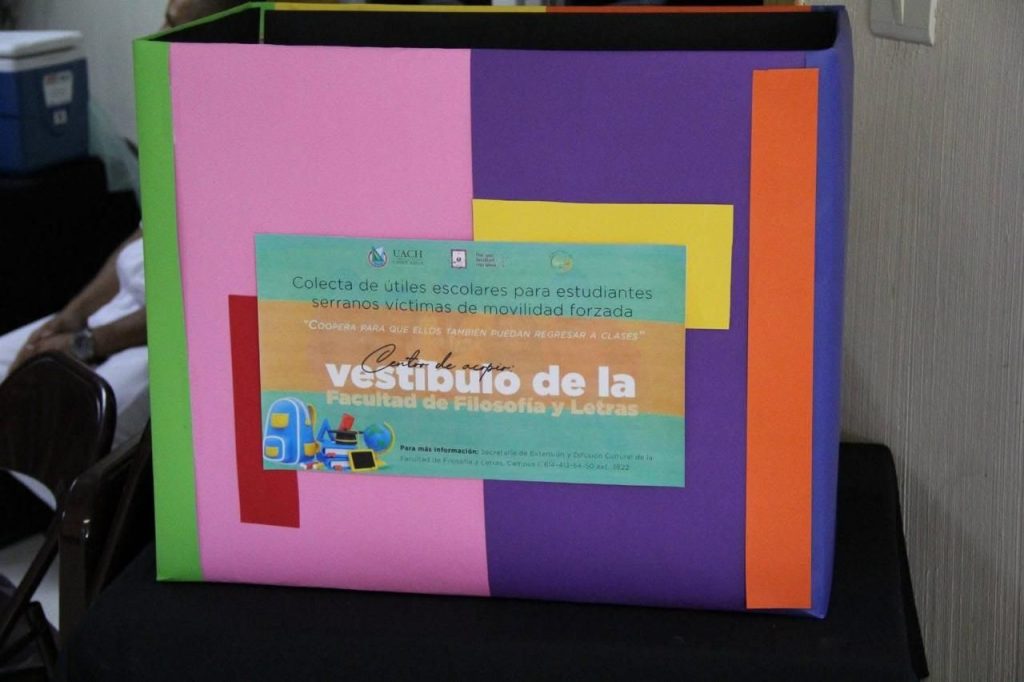 En un esfuerzo por apoyar a niñas, niños y jóvenes que han sido víctimas de desplazamiento forzado en la región serrana del estado, la Facultad de Filosofía y Letras de la Universidad Autónoma de Chihuahua (UACH) ha iniciado una campaña de colecta de útiles escolares.