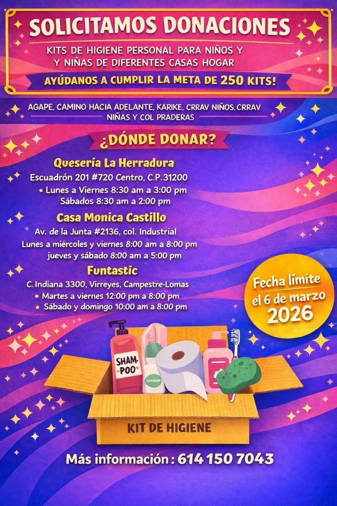 Se puede donar en Quesería la Herradura, Casa Mónica Castillo y Funtastic o al teléfono 614 150 7043.