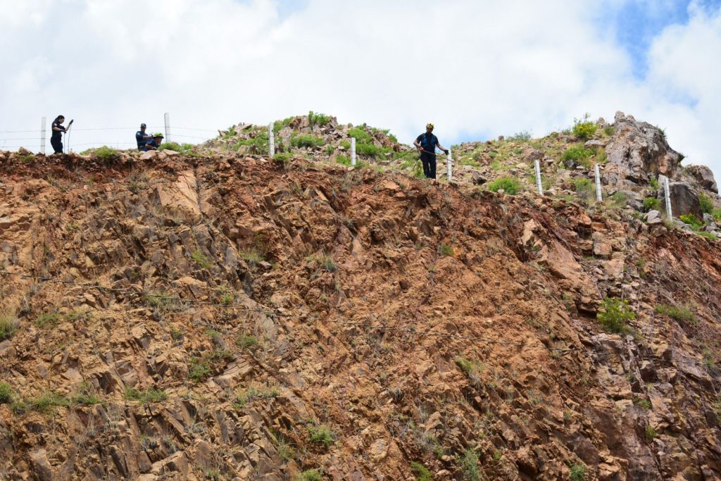 Elementos del Cuerpo de Bomberos utilizaron técnicas de rapel para despejar las rocas sueltas en un corte del cerro, específicamente en la calle Miguel Trillo de la colonia Héroes de la Revolución.