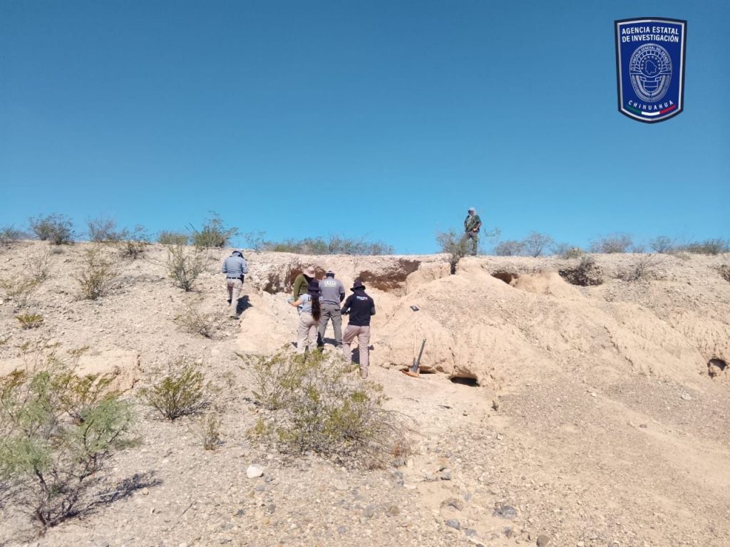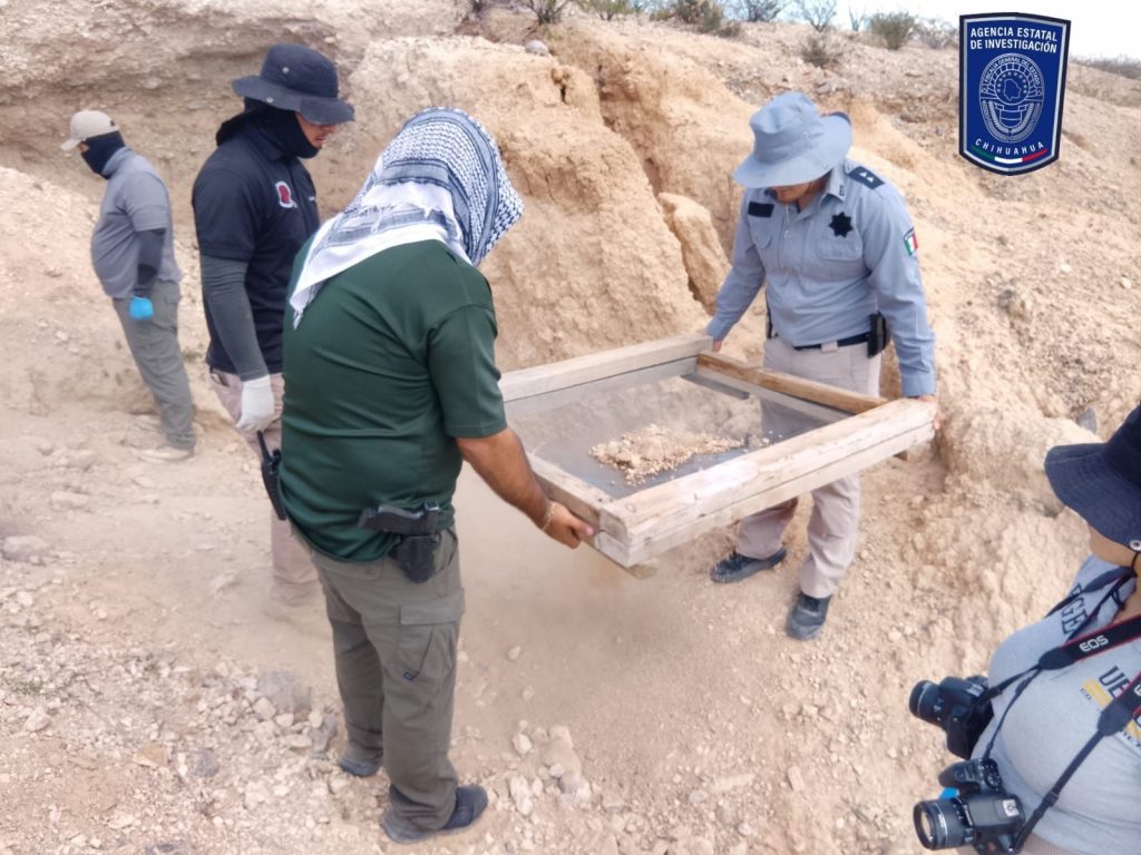 Como resultado, se localizaron dos osamentas incompletas semienterradas, así como varias prendas de vestir, una bota táctica izquierda de color café claro y fragmento de cobija de color oscuro.