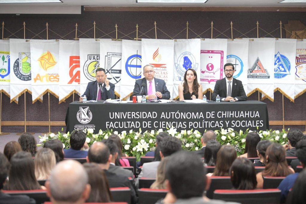 La sesión solemne 630, celebrada este miércoles en el Auditorio de la Facultad de Ciencias Políticas y Sociales del Campus Ciudad Juárez, marcó un hito, al ser la primera vez en la historia de la UACH que su máximo órgano de gobierno se reúne en esta frontera. La decisión se tomó con fundamento en los artículos 16 de la Ley Orgánica de la UACH y 36 del Reglamento de los Consejos Universitario y Técnicos.