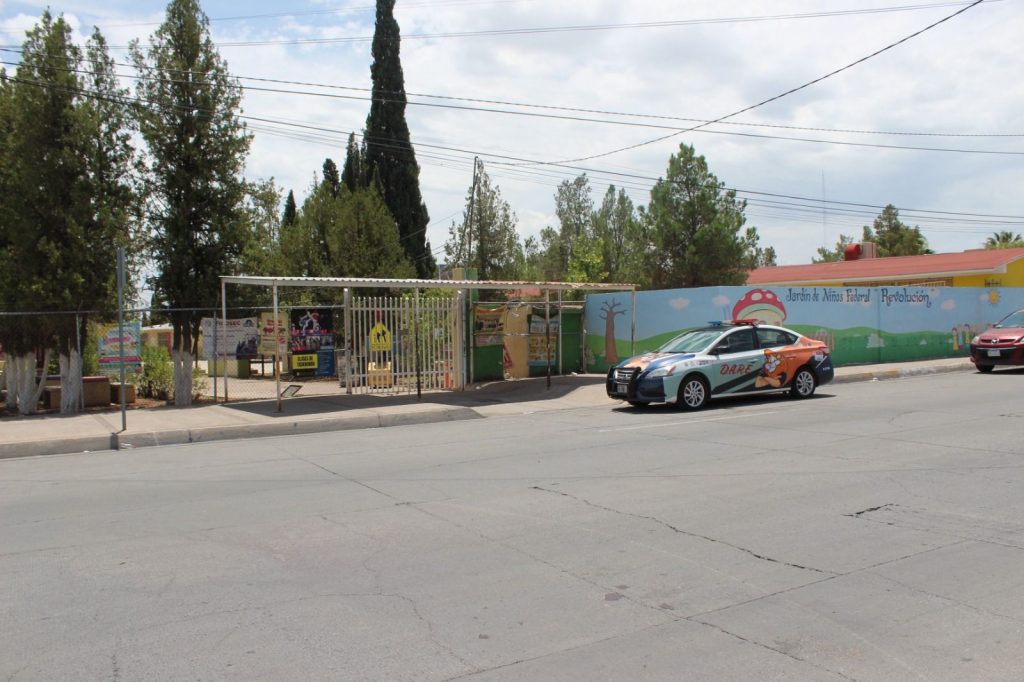 Por vacaciones de verano, agentes de la Policía Municipal realizan vigilancia en planteles educativos por medio de recorridos terrestres a fin de evitar actos vandálicos o delitos en los inmuebles.