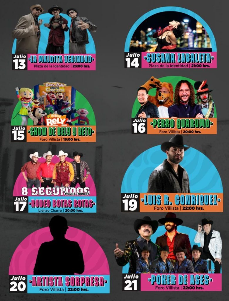 -Domingo, 21 de julio: El cierre de las Jornadas Villistas estará marcado por la vibrante música norteña de Poker de Ases, con grandes artistas como Lorenzo de Monteclaro, Miguel y Miguel, Eliseo Robles, y Los Cadetes de Linares.
