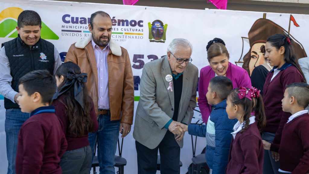 El alcalde Beto Pérez encabezó la ceremonia cívica con motivo del 532° aniversario del Descubrimiento de América, a la que asistieron como invitados especiales los alumnos de la escuela primaria 15 de Septiembre.