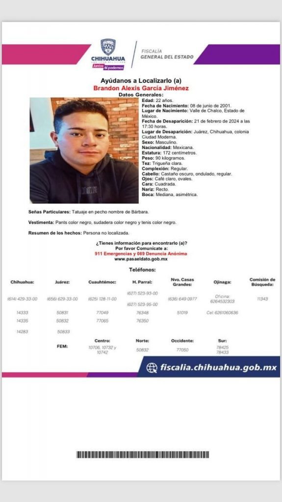 Estas acciones forman parte de las indagatorias para dar con el paradero de Brandon Alexis García Jiménez y David Alejandro González González, quienes fueron vistos por última vez el 21 de febrero de este año.