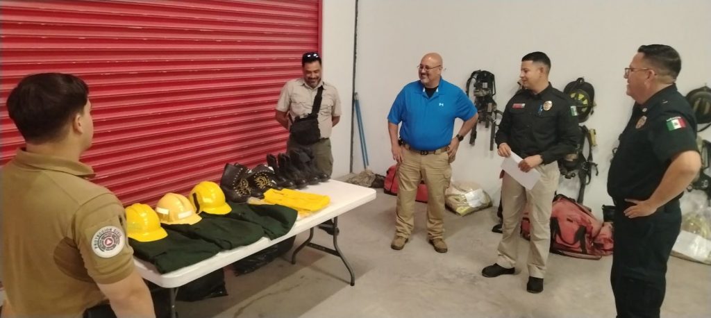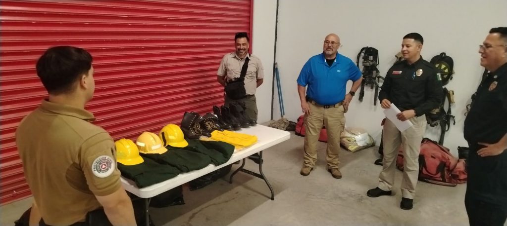 El material incluye cascos, guantes, pantalones y botas, que son esenciales para la seguridad de los combatientes, y fue recibido por el titular de la dependencia estatal, Luis Corral Torresdey.