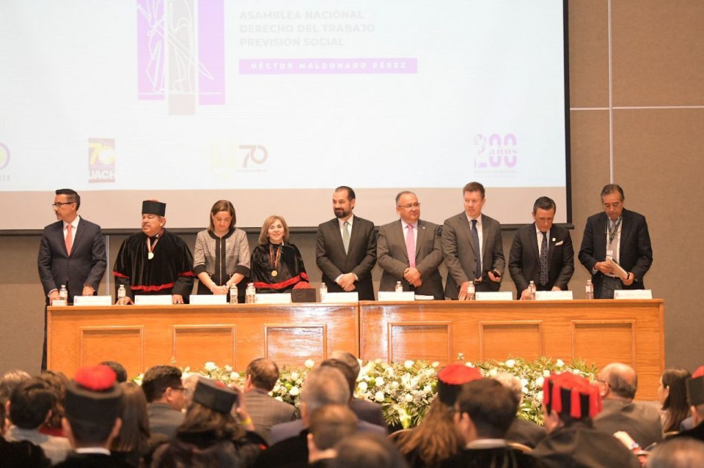 A través de una emotiva ceremonia que se efectuó en el Centro de Convenciones de Chihuahua, se inauguró la LXIV Asamblea Nacional del Derecho del Trabajo y la Previsión Social, cuya sede fue la Universidad Autónoma de Chihuahua, a través de la Facultad de Derecho.