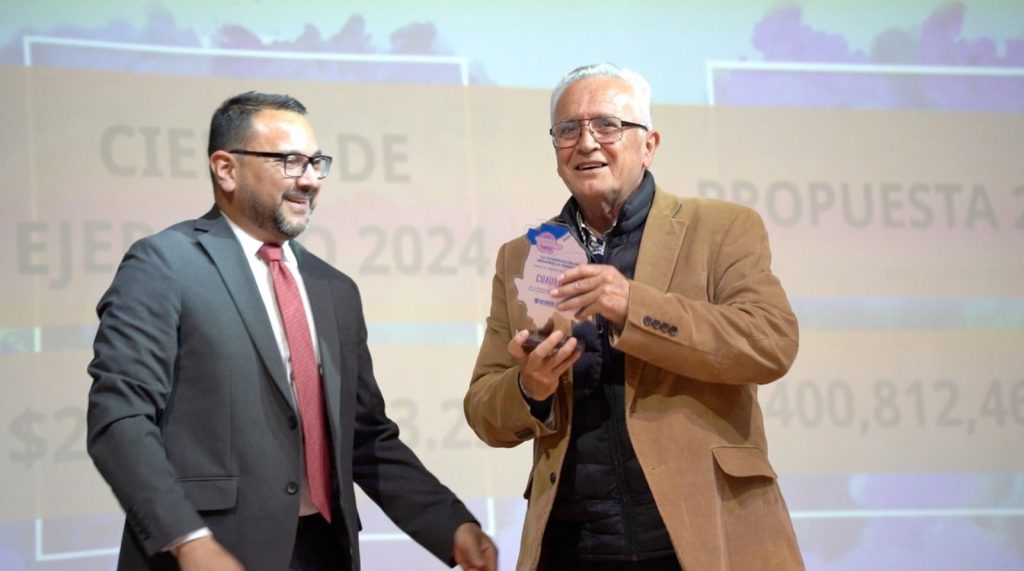 En el marco de la Sesión del Coplademun, a nombre de la gobernadora Maru Campos, el coordinador de Desarrollo Municipal, Jorge Puentes, hizo la entrega de un reconocimiento al alcalde Beto Pérez, por ser el Municipio de Cuauhtémoc uno de los mejores del estado, tras su participación en el programa “Guía Consultiva de Desarrollo Municipal”.