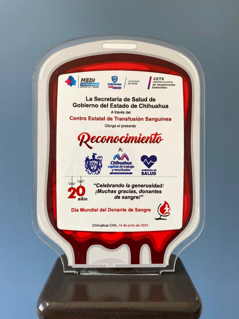 El gobierno municipal de Chihuahua fue reconocido por el Centro Estatal de Transfusión Sanguínea del Estado, por su destacada campaña de donación altruista de sangre realizada en el 2023 a través de la Comisión de Salud del Ayuntamiento de Chihuahua.