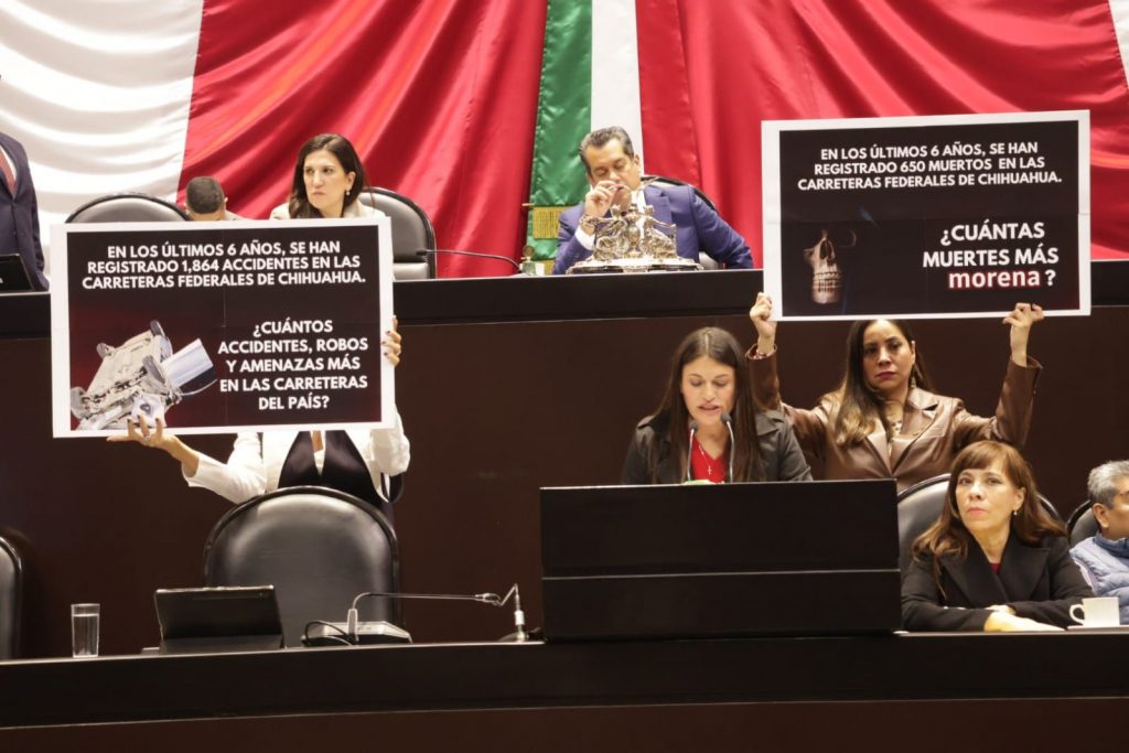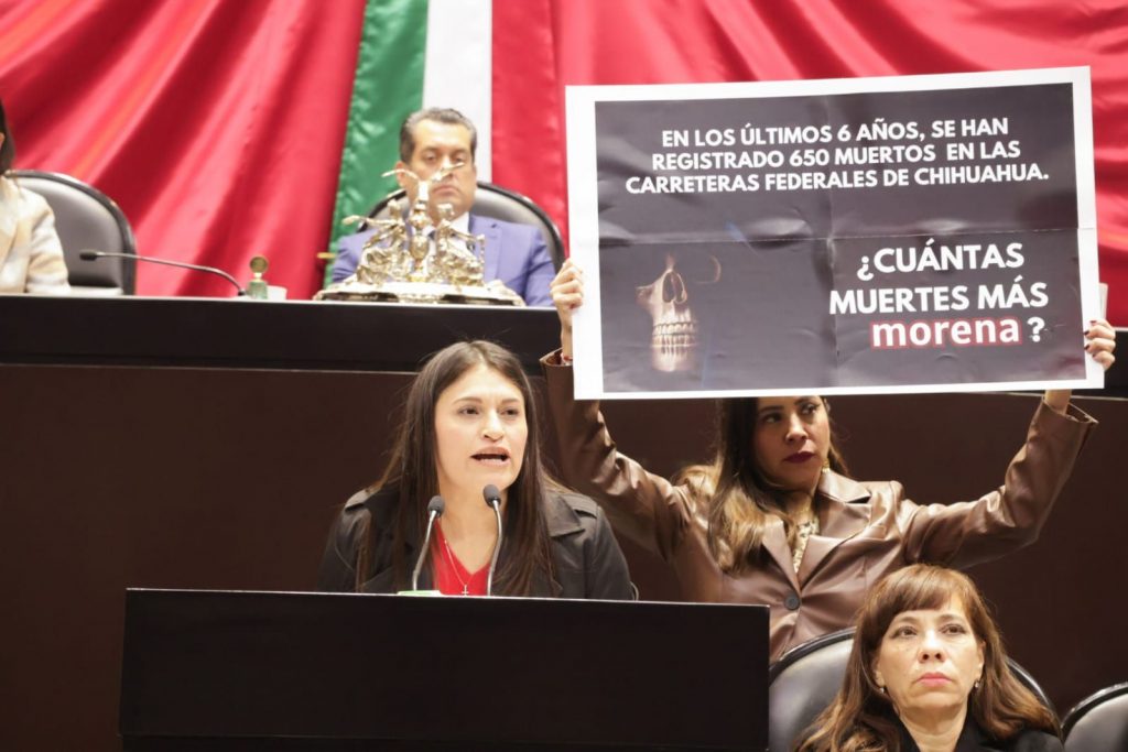 Tras presentar una serie de reservas durante la discusión en lo particular del PEF 2025, la legisladora por Chihuahua se refirió al abandono de las carreteras por parte del Gobierno federal. Dijo que, en los seis años de administración de López Obrador, la negligencia para invertir en carreteras y la falta de mantenimiento, costó la vida, tan solo en Chihuahua, de 650 personas en mil 864 accidentes automovilísticos.