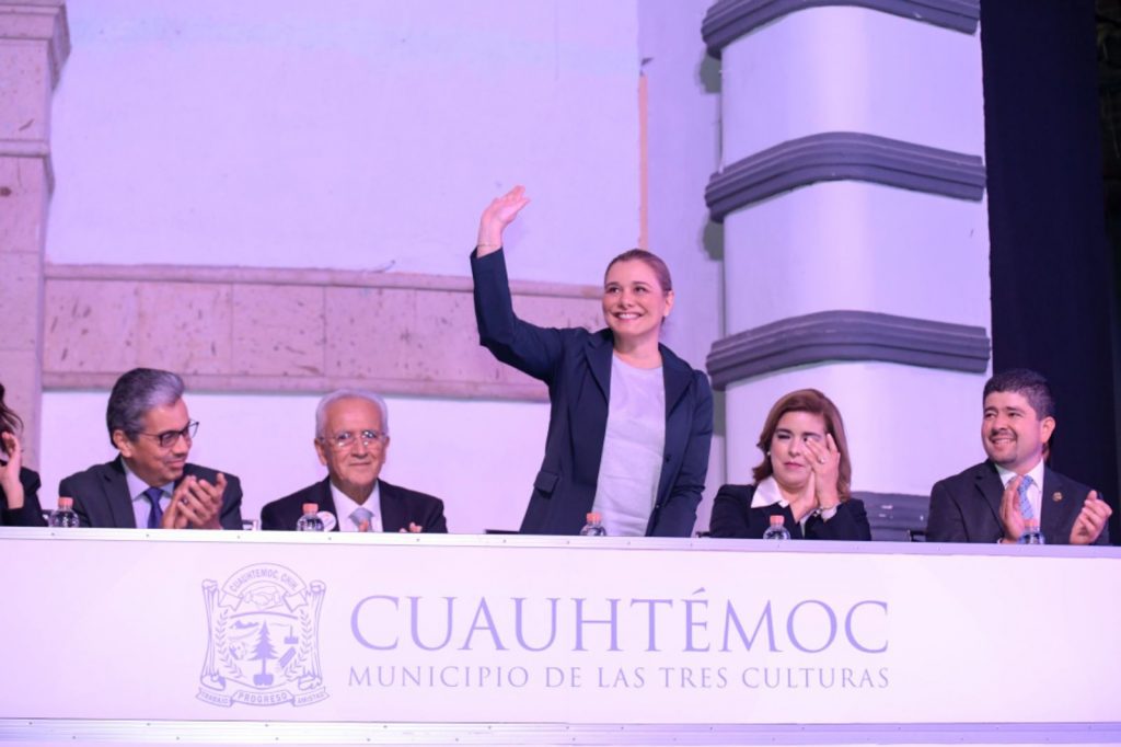 La titular del Ejecutivo manifestó que en Cuauhtémoc se materializa la personalidad de los chihuahuenses, pues aquí la sociedad no ha recibido nada regalado, ni heredado o prestado, pues su prosperidad se ha construido desde el trabajo esperanzado de las familias.