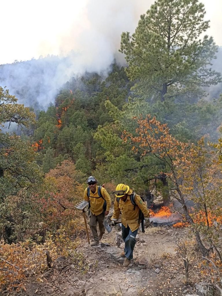 Con relación al incendio forestal en el Ejido Vicente Guerrero, en un predio particular en la colonia Ignacio Zaragoza de Campo Nuevo en Casas Grandes, se informa que se encuentra controlado al 85 por ciento y es atendido por 3 combatientes oficiales de la Comisión Nacional Forestal (Conafor), 10 de Protección Forestal Municipal, 14 elementos de la Secretaría de la Defensa Nacional (SEDENA), 17 combatientes de Gobierno del Estado, 2 personas de protección civil municipal, 14 personas voluntarios.