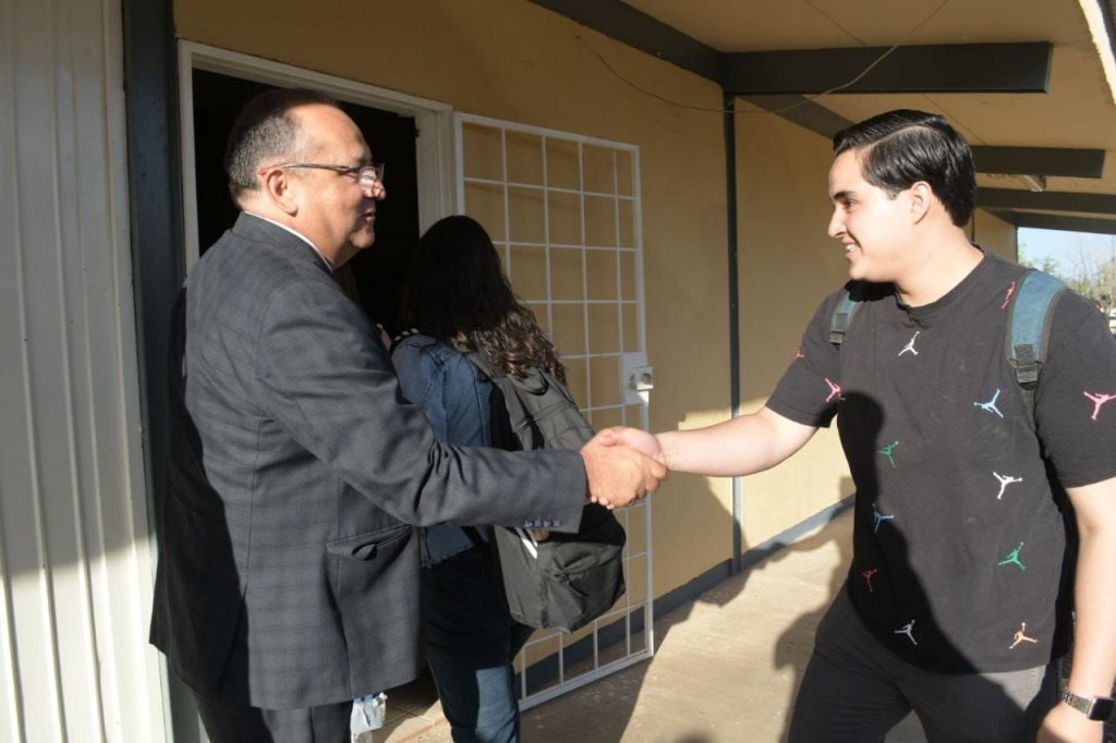 Este semestre, la bienvenida a cargo del Mtro. Rivera Campos se realizó en la Facultad de Ciencias Agrícolas y Forestales en la Ciudad de Cuauhtémoc, acompañado por el Director Ricardo Aarón González Aldana y el Lic. Héctor Hernández Varela, Presidente del Patronato Universitario: “FACIATEC es una de las unidades académicas que más ha crecido, en especial en Cuauhtémoc, donde se les prepara a satisfacer las necesidades de las actividades propias de la región”, añadió el Rector.