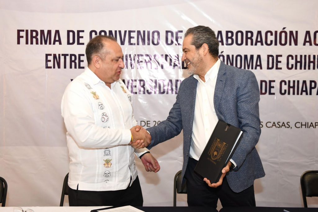 La Universidad Autónoma de Chihuahua y la Universidad Autónoma de Chiapas renovaron la vigencia del Convenio General de Colaboración Académica, Científica y de Investigación, en un encuentro realizado en la Facultad de Derecho, Campus III, con sede en San Cristóbal de Las Casas.
