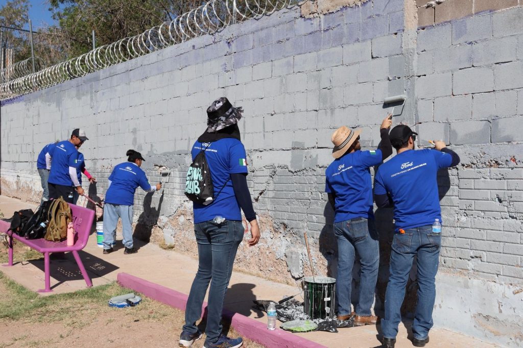 Fue el voluntariado de Ford quien donó el 80 por ciento de la pintura y material necesario, mientras que la Dirección de Mantenimiento Urbano proporcionó el resto de los insumos, y la mano de obra, fue por la asociación civil A’wí Formadores Ambientales y estudiantes de la Facultad de Zootecnia de la UACH.
