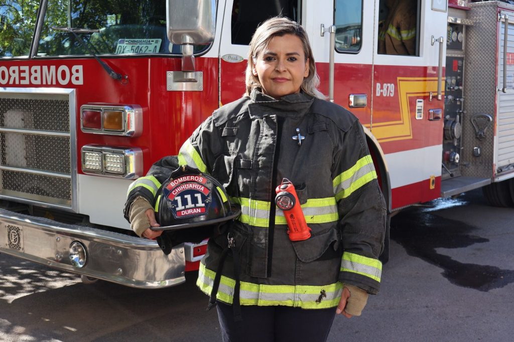 Sandra Durán , cuenta con 14 años de antigüedad en el H. Cuerpo de Bomberos de Chihuahua y actualmente tiene el grado de bombero segundo, se define como una guerrera, una luchadora que sobrevivió al cáncer de mama y la transformó en una persona fuerte, más cuando recuerda la frase que le han repetido: “si pudiste con eso puedes con todo.”