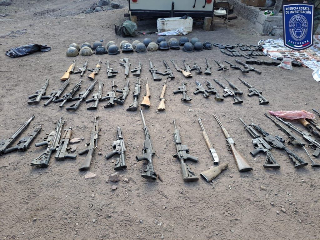- Hallaron arsenal que incluía 60 armas de fuego, cientos de cartuchos útiles, cascos tácticos, cargadores, radios, chalecos tácticos